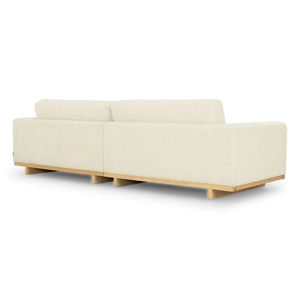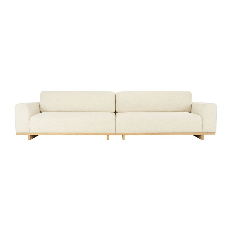 Aya er en rummelig 4-personers sofa med et helt særligt design. Stilen kalder vi ”Japandi” og er et møde mellem klassisk japansk og klassisk skandinavisk stil, hvor fokus er på enkelthed, rene linjer og naturlige materialer. Sofaens ben består en sammenhængende ramme i det smukkeste sæbebehandlede egetræ, som står i flot kontrast til de store, bløde siddehynder og markante armlæn.