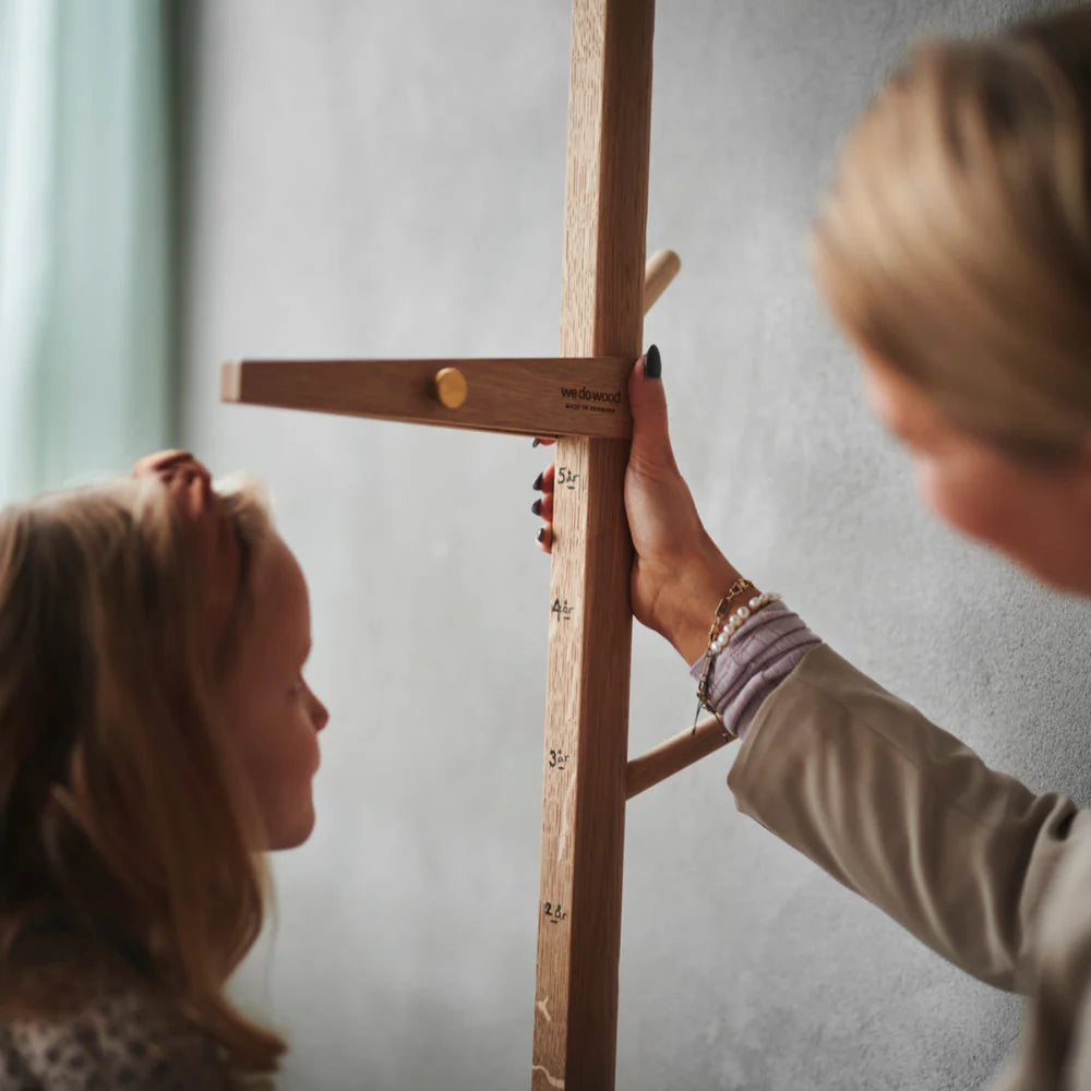 Laid Back er designet med næste generation i tankerne. Dette innovative tøjstativ fungerer ikke blot som et smukt og funktionelt møbel, det har også en helt særlig funktion på bagsiden. Forældre kan mindes dyrebare øjeblikke ved at bruge tøjstativet til at måle deres børns højde og markere årstallet, hvilket skaber en varig registrering af vækst og nostalgi.