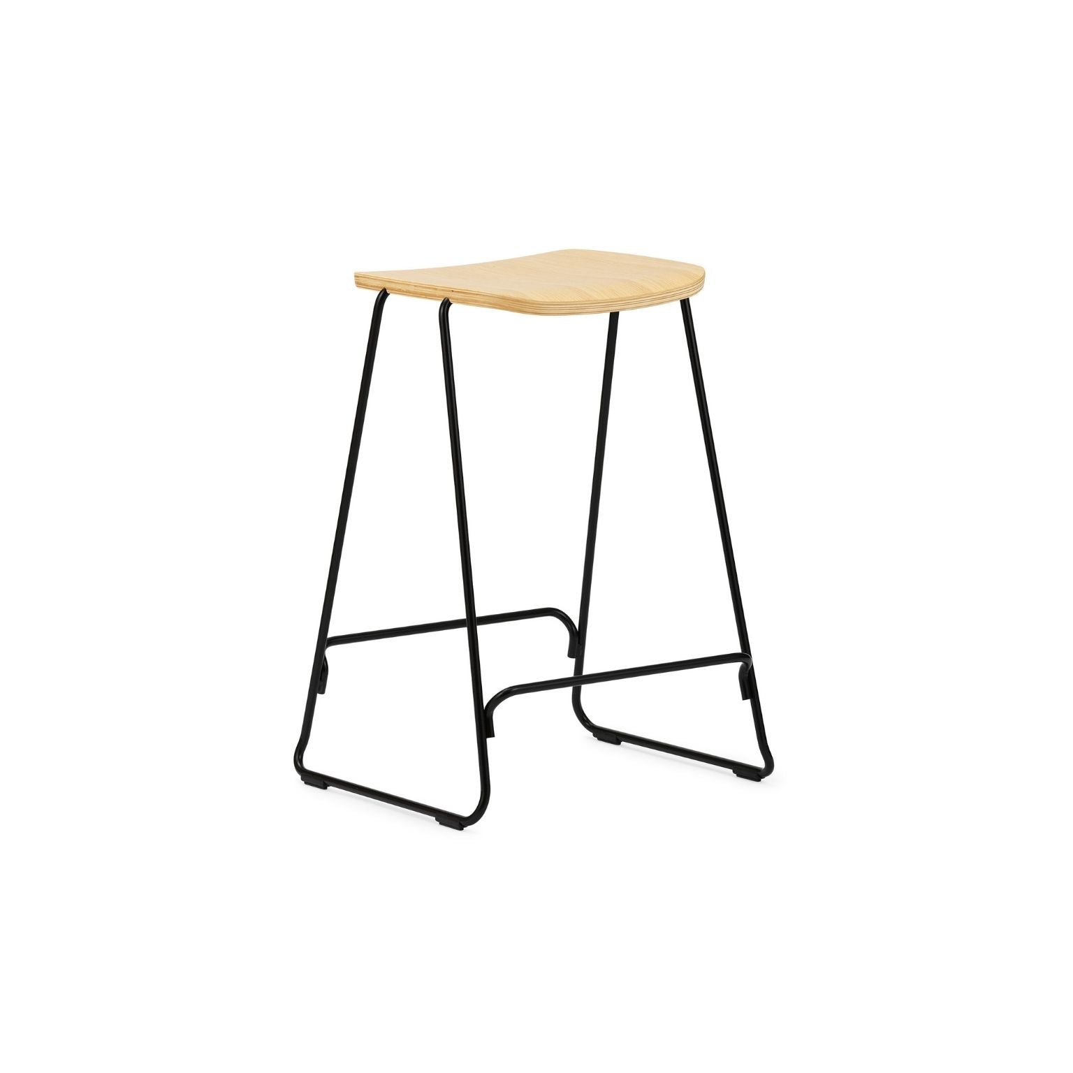 Just barstolen, designet af Iskos-Berlin for Normann Copenhagen, kombinerer enkelhed og finesse i ét harmonisk udtryk. Stolen bygger videre på Just-seriens signatur: en let, formspændt skal i finér med en elegant tilspidset silhuet og et slankt stålstel, der diskret integreres i sædet.