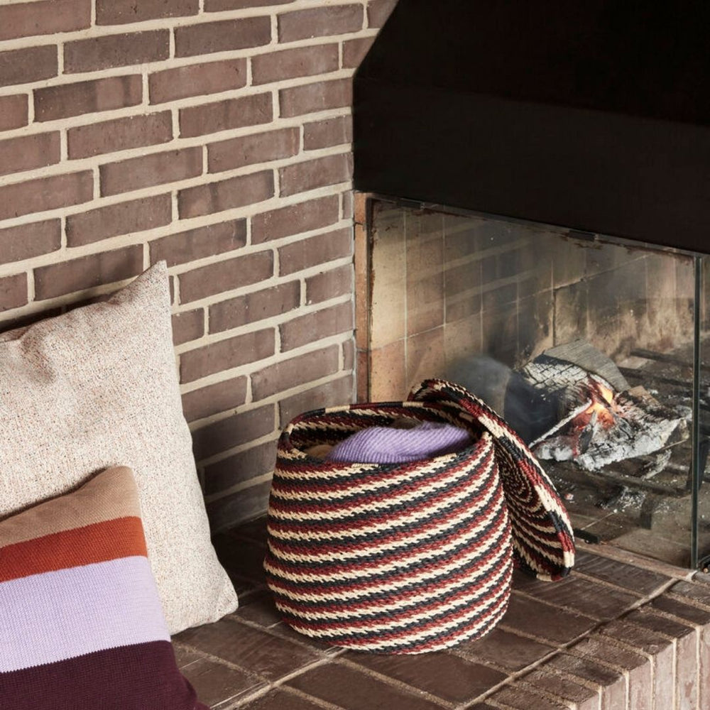 De runde kurve med låg kommer i et sæt af to. Brug kurvene til opbevaring, og placer dem hvor som helst i dit hjem. Farvekombinationen giver kurven et klassisk og rustikt udtryk. Dette produkt er håndlavet og kan derfor varierer.