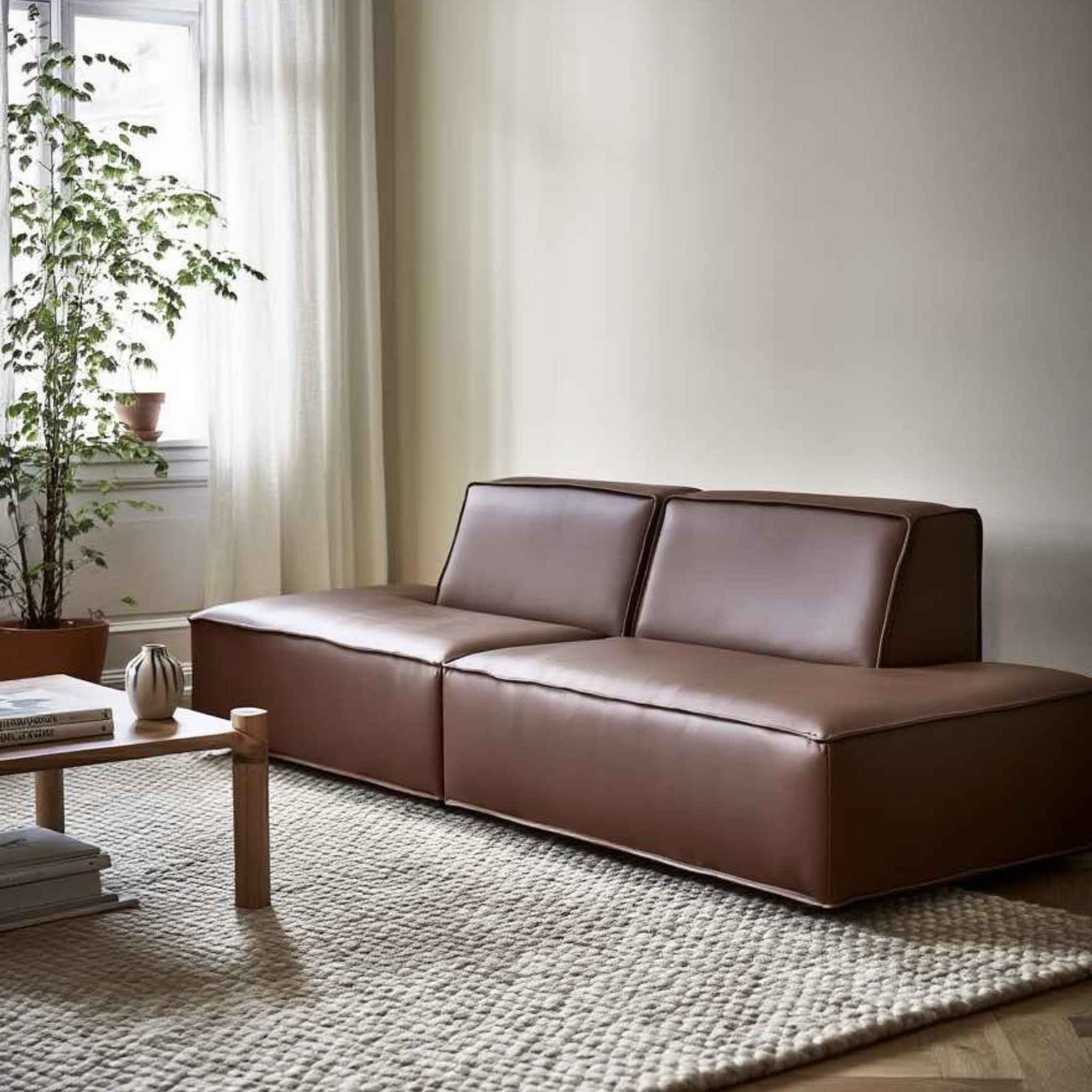 Tetris’ moduler er fuldpolstrede, hvilket betyder, at der ikke er løse siddepuder, der forskubber sig eller bliver flade med tiden. Det giver sofaen et strømlinet og tidløst look. Modulerne kobles let sammen med skjulte krokodillenæb under bunden, så du får en stabil og sammenhængende løsning.