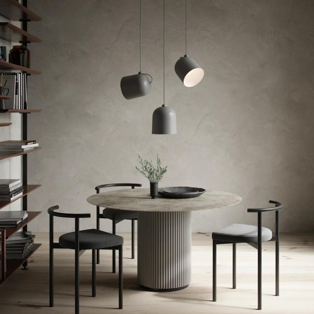 dftp's Angle er eksklusiv belysning med et industrielt look, som er designet af danske Maria Berntsen. Det særlige ved denne lampe er muligheden for at retningsbestemme lyset, via den monterede magnet på ledningen. Lampen tager sig godt ud i klynger af flere, som vinkles forskelligt. Det giver et lækkert udtryk og tilfører ethvert rum lidt ekstra stemning.