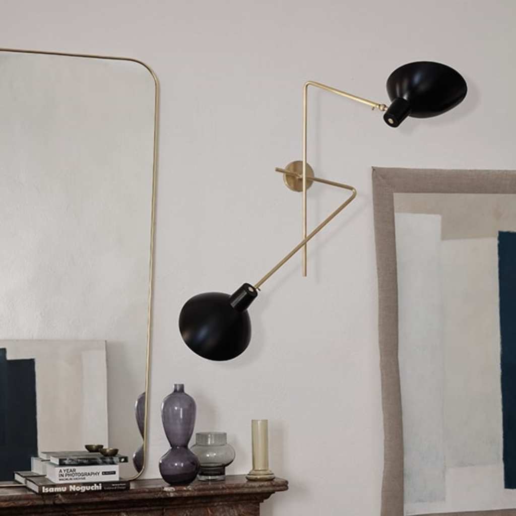 VV Cinquanta fra Astep har en elegant og alsidig justerbar direkte lyskilde, der kan dreje og vippe. Twin modellen er en elegant to-armet væglampe. Monteret på et messingbeslag rækker de to messingarme ud i hver sin retning. De brede signaturreflektorer kan vinkles og drejes for at give både indirekte og direkte belysning samtidigt. En skulpturel væglampe med flere lyskompositioner.