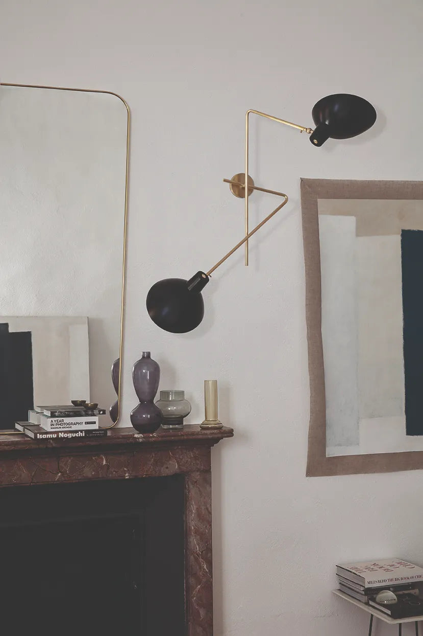 VV Cinquanta von Astep verfügt über eine elegante und vielseitig einstellbare direkte Lichtquelle, die gedreht und geneigt werden kann. Das Modell Twin ist eine elegante Wandleuchte mit zwei Armen. Die beiden Messingarme sind an einer Messinghalterung befestigt und ragen in unterschiedliche Richtungen. Die breiten Reflektoren können geneigt und gedreht werden, um gleichzeitig indirekte und direkte Beleuchtung zu erzielen. Eine skulpturale Wandleuchte mit mehreren Lichtkompositionen.
