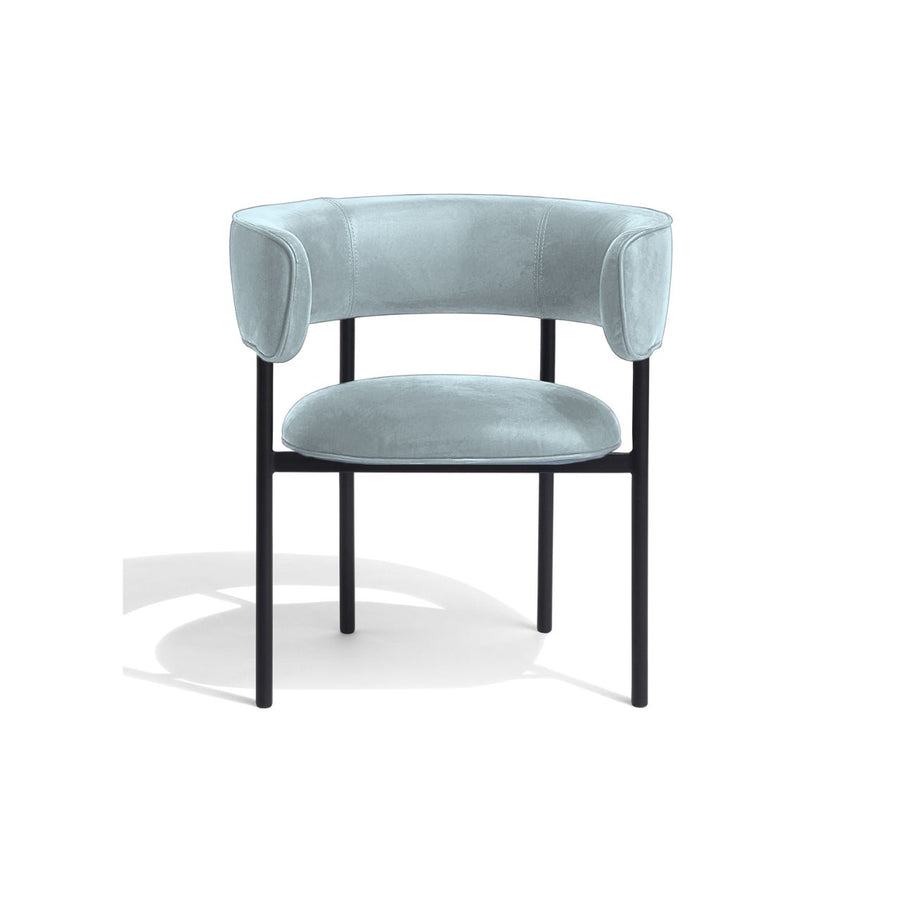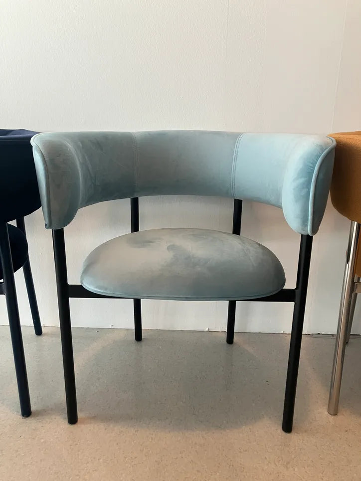 Møbel Copenhagen FONT Esszimmerstuhl m. Armlehne - Hellblauer Velours/Schwarzes Gestell