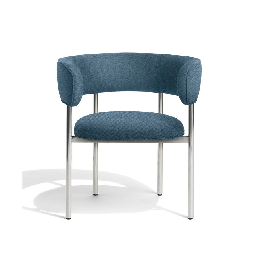 Møbel Copenhagen FONT Esszimmerstuhl m. Armlehne - Petrolblau/Polierter Stahlrahmen