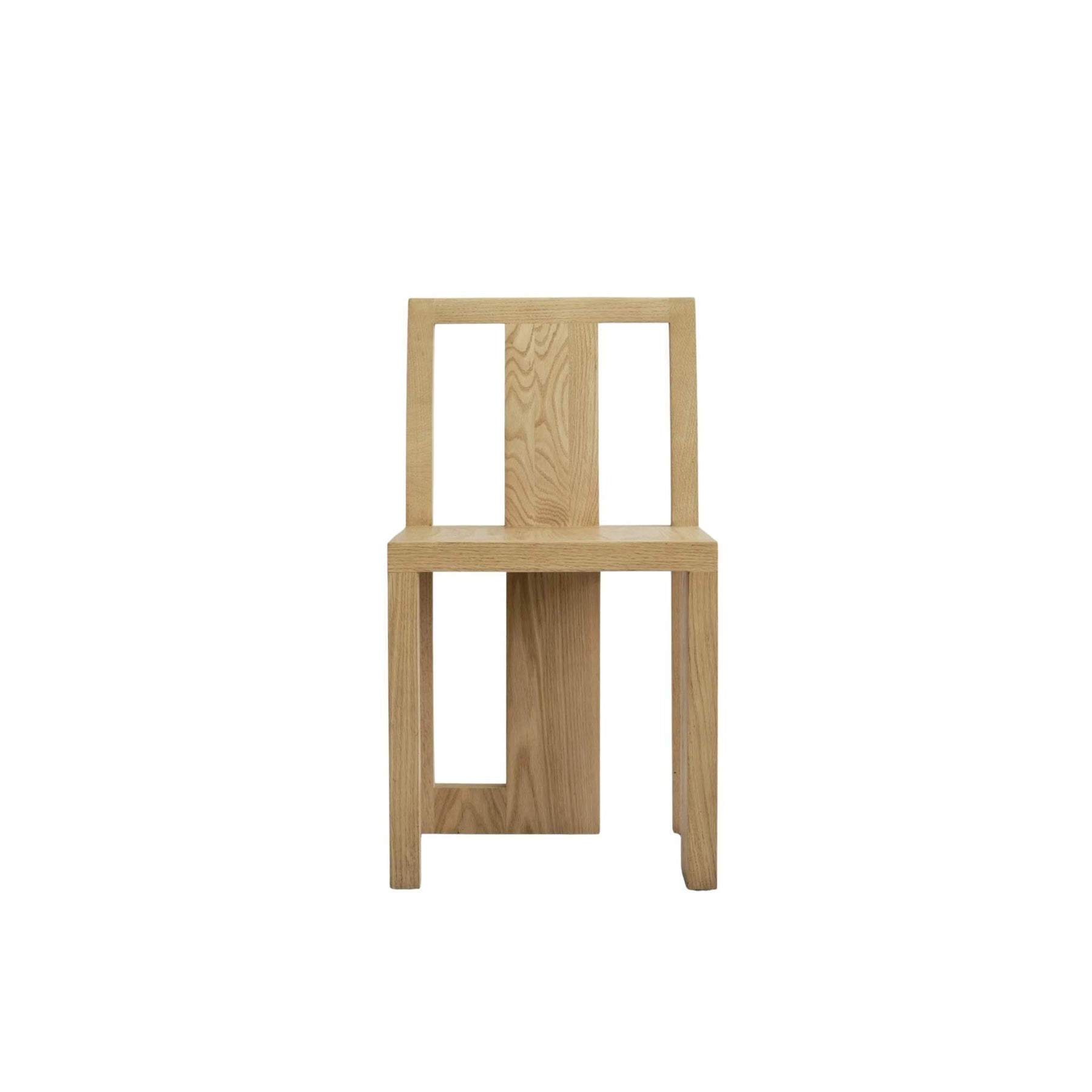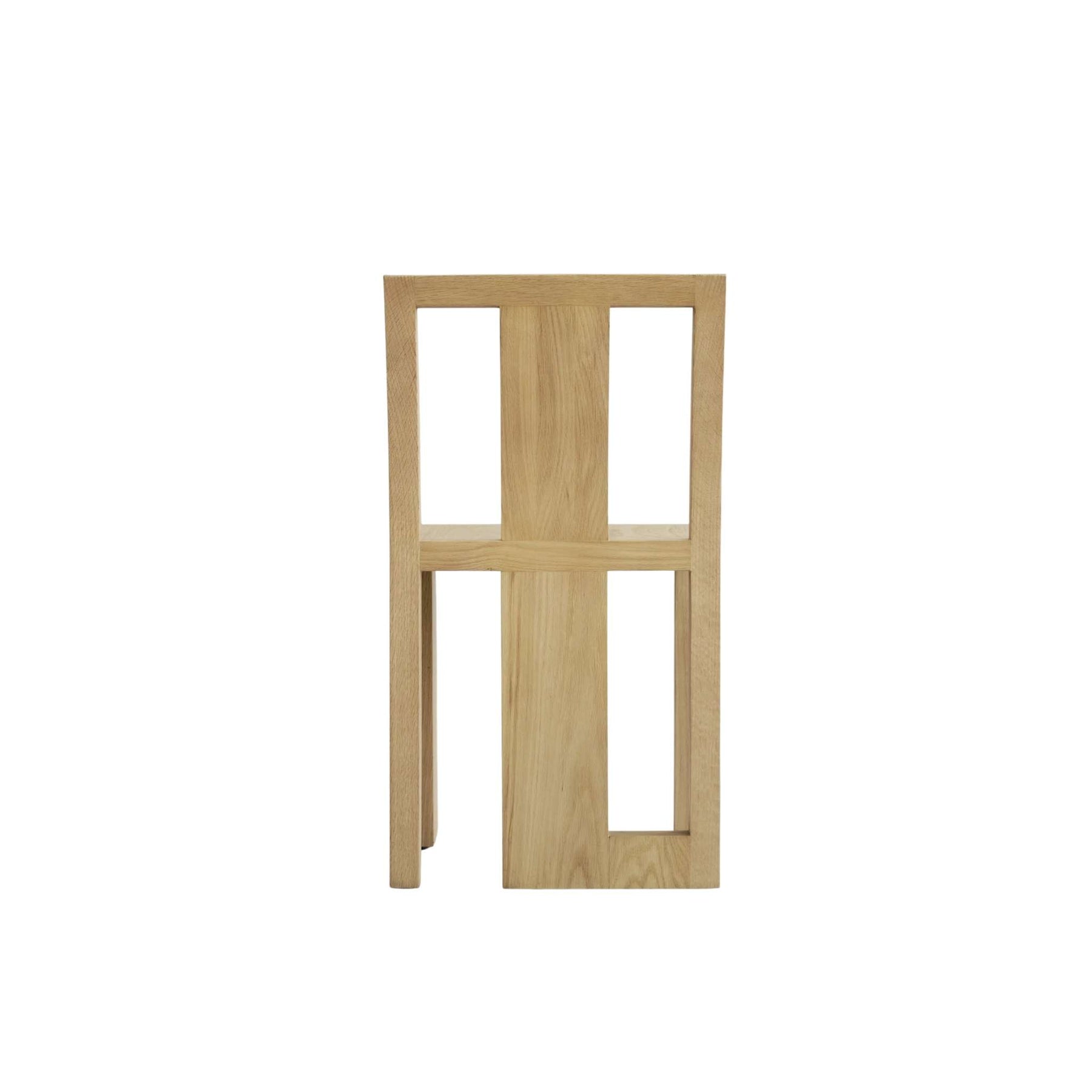 Atsu-stolens asymmetriske struktur fungerer som et skulpturelt statement, hvor massive egetræsplanker danner både det ene forben og ryglænet i midten. Dette bevidste designvalg bryder med konventionelle opfattelser og inviterer beskueren til at opleve stolen fra forskellige vinkler – ligesom man ville udforske en skulptur eller et kunstværk.