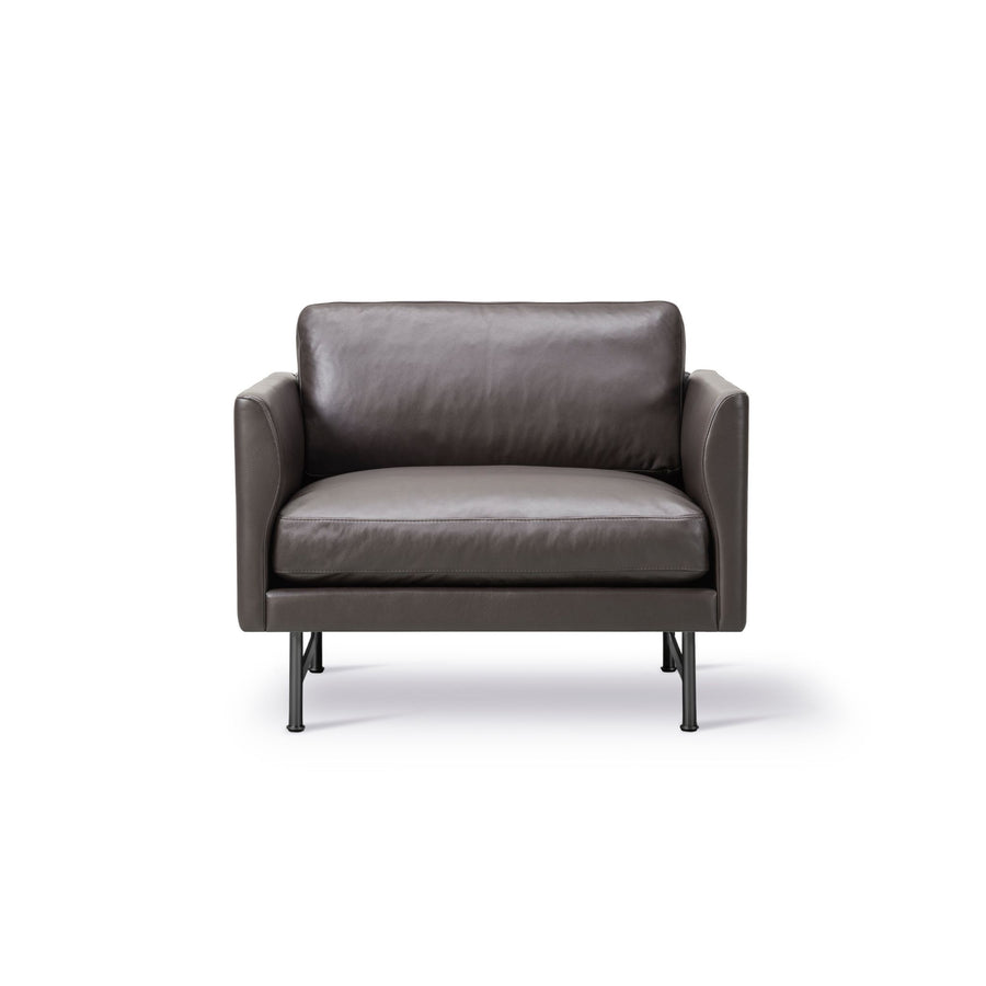 Fredericia Calmo Lounge Chair – Dunkelbraunes Omni-Leder / Schwarzes Metall