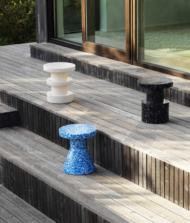 Die pixellierte Oberfläche der Bit-Serie von Normann Copenhagen besteht aus kleinen Stückchen aus Recyclingplastik aus der Industrie und Haushalten. Bit kann als Podest für eine schöne Blumenarrangement, als Beistelltisch für die Lampe oder als Hocker für den zusätzlichen Gast verwendet werden. Der Hocker eignet sich sowohl für Innen- als auch für Außenbereiche und hält Temperaturen von -10°C bis +50°C.