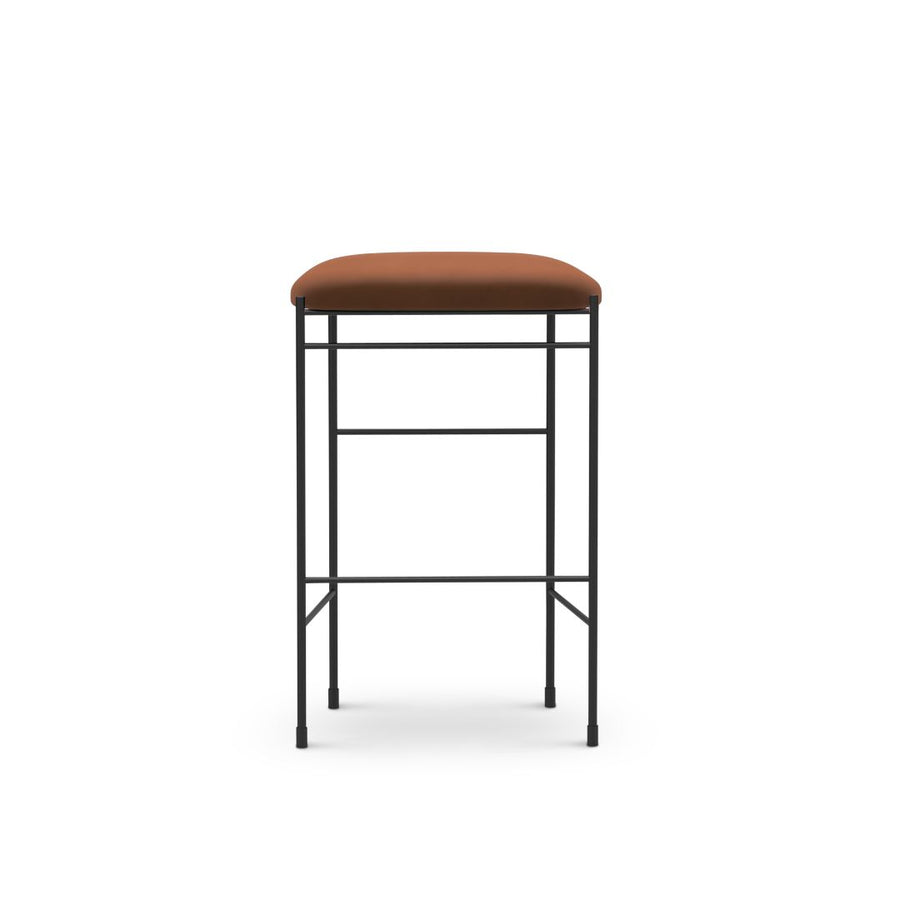 New Works Covent Barhocker H65, Schwarz/Braunes Leder