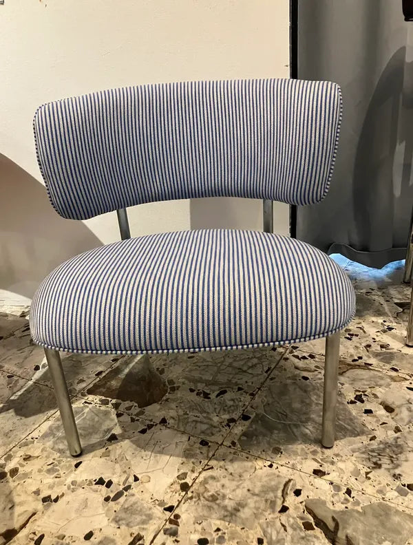 Møbel Copenhagen FONT Outdoor Sessel - Gestreift Blau-Weiß/Galvanisierter Stahlrahmen