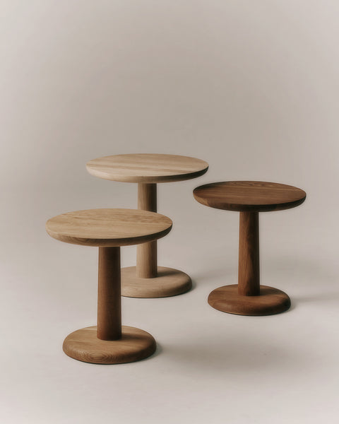 Pon ist eine Serie von Beistelltischen in verschiedenen Größen aus massiver Eiche, die 2015 von Jasper Morrison für Fredericia Furniture entworfen wurde. Die kompakte Form und die Auswahl an verschiedenen Größen und Höhen ermöglichen eine flexible Nutzung – als Einzelstück neben einem Loungesessel oder zusammen mit einer Sofagruppe.